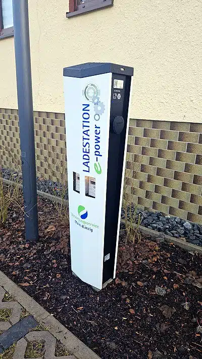 In diesen Tagen wurde die neue "E-Tankstelle" von Bürgermeisterin Sibylle Hergert gemeinsam mit VSMK-Geschäftsführer Philipp Eckert offiziell in Betrieb genommen. Am neuen Standort ist eine Ladesäule mit zwei Ladepunkten installiert, die jeweils eine Ladeleistung von bis zu 22 kW bieten. Die Gemeinde stellt dafür zwei Parkflächen des neu angelegten Parkplatzes am Dorfgemeinschaftshaus Kempfenbrunn zur Verfügung. Damit befindet sich die Ladesäule in unmittelbarer Nähe zum Gemeinschaftshaus und auch zum Sportplatz - ideal für alle, die ihr Fahrzeug während der Zeit eines Besuchs oder einer Veranstaltung laden möchten.