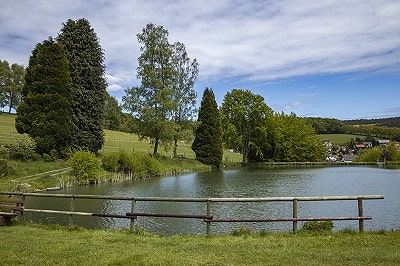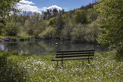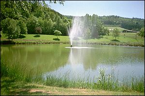 Die Bilder unten zeigen die Angelteiche teils mit eingeschalteter Wasserfontaine